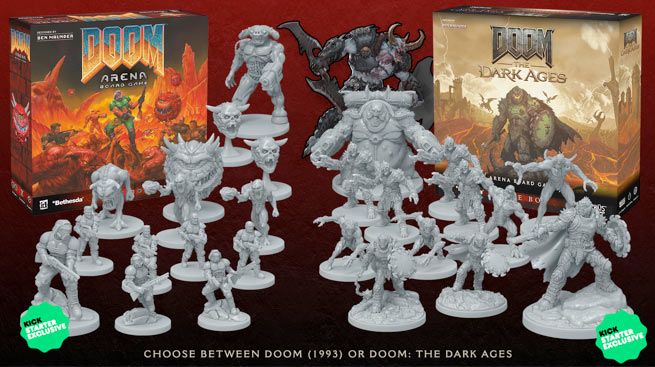 Weiter zur Auswahl stehen verschiedene Doom-Guy-Versionen, Dämonen-Klassen und Kickstarter-Exklusives – plus Stretchgoals, wenn der Geldbeutel tief genug ist.