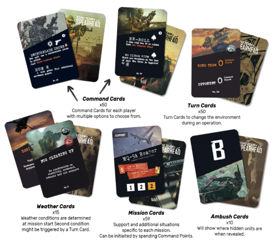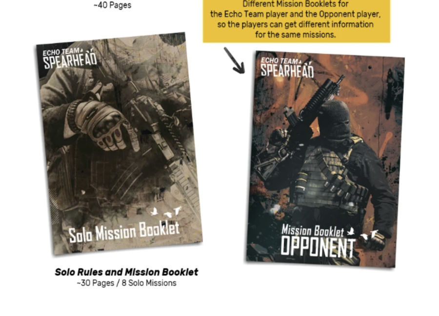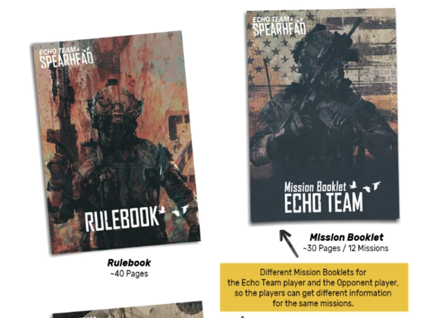 Echo Team: Spearhead ist ein kartengesteuertes, taktisches Wargame für ein bis vier Spieler, entwickelt vom Black Mask Verlag und angesiedelt im Jahr 2028. Sofern man nicht den Solomodus spielt, übernimmt ein Seite die Spezialeinheit Echo Team, während die andere die Rolle eines hochorganisierten Gegners einnimmt – Kartelle, Warlords oder Geheimdienste.